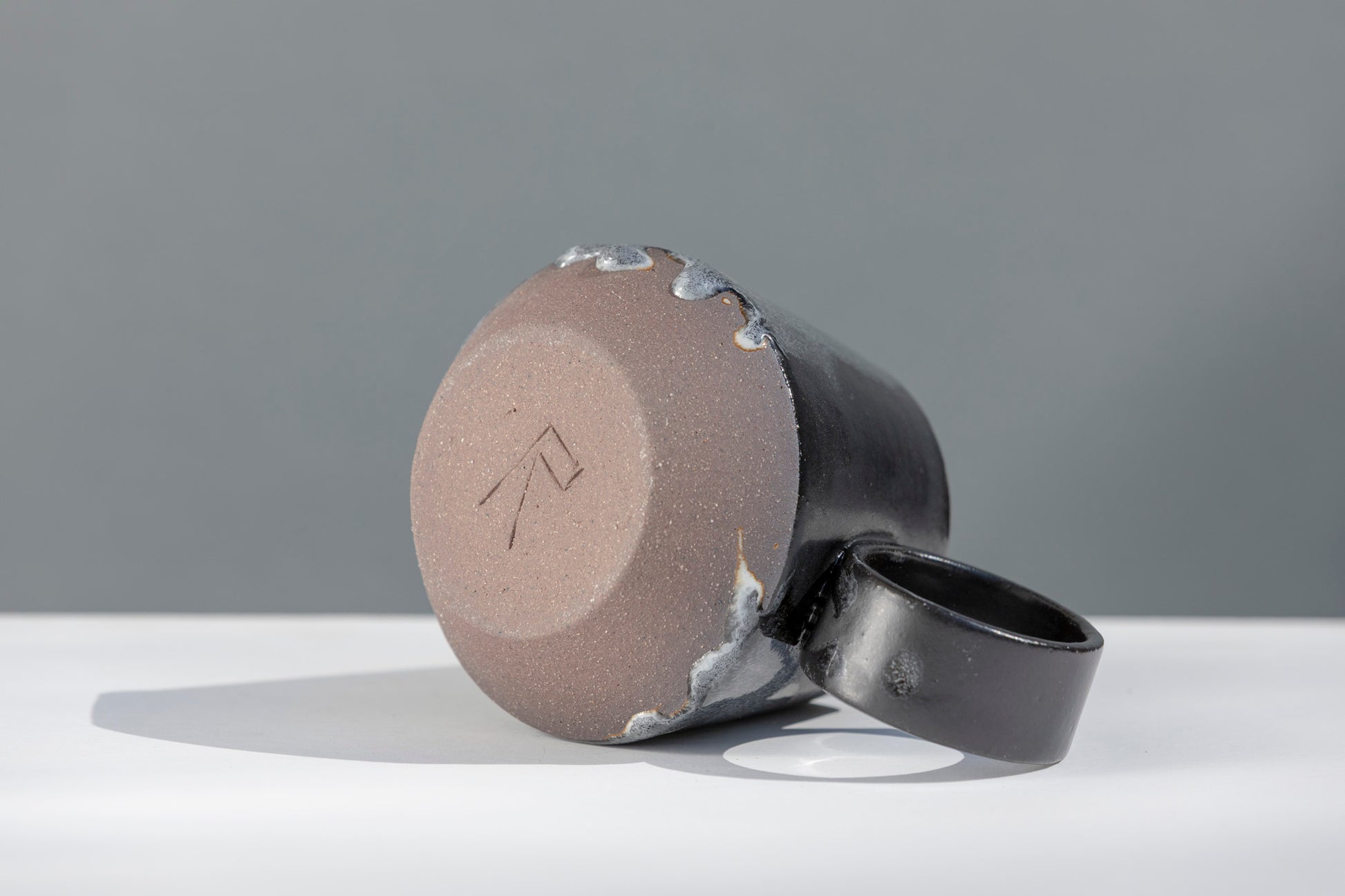 Indulge in your favorite beverages with this exquisite handcrafted stoneware mug, showcasing a uniquely textured glaze with matte black and shiny white marbling. Featuring a comfortable and a refined design, it adds a touch of sophistication to your kitchen, office, or gift collection.