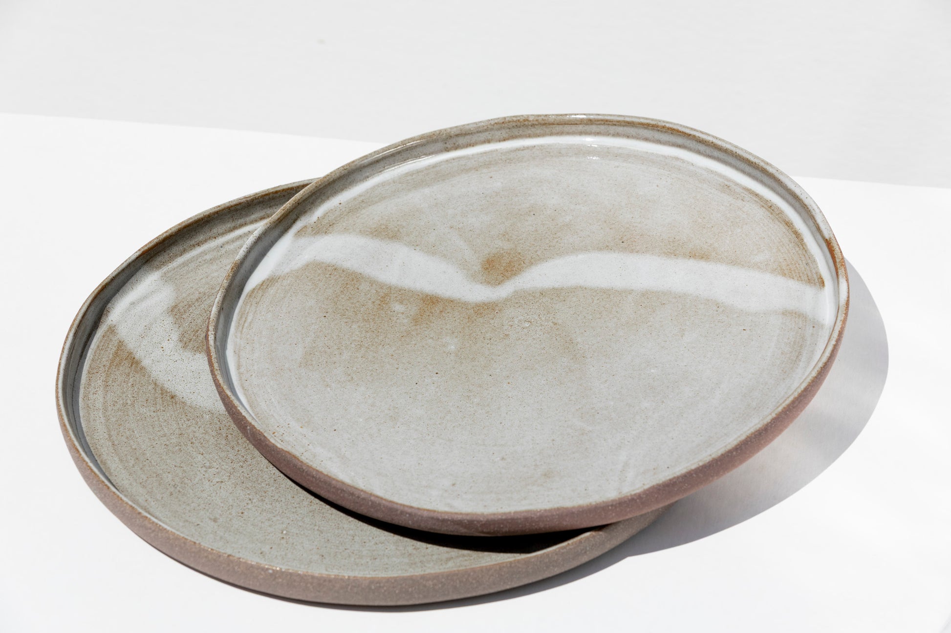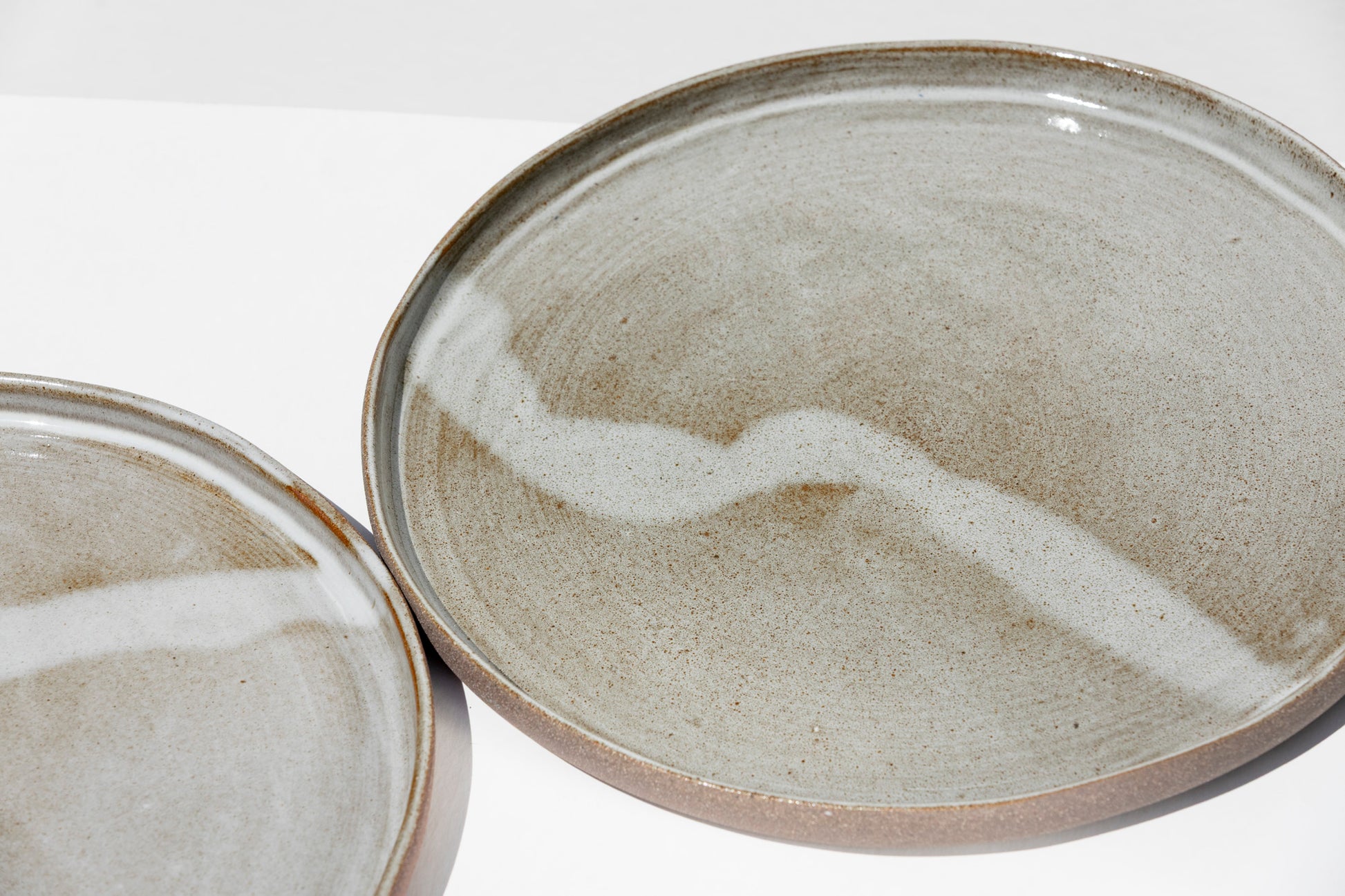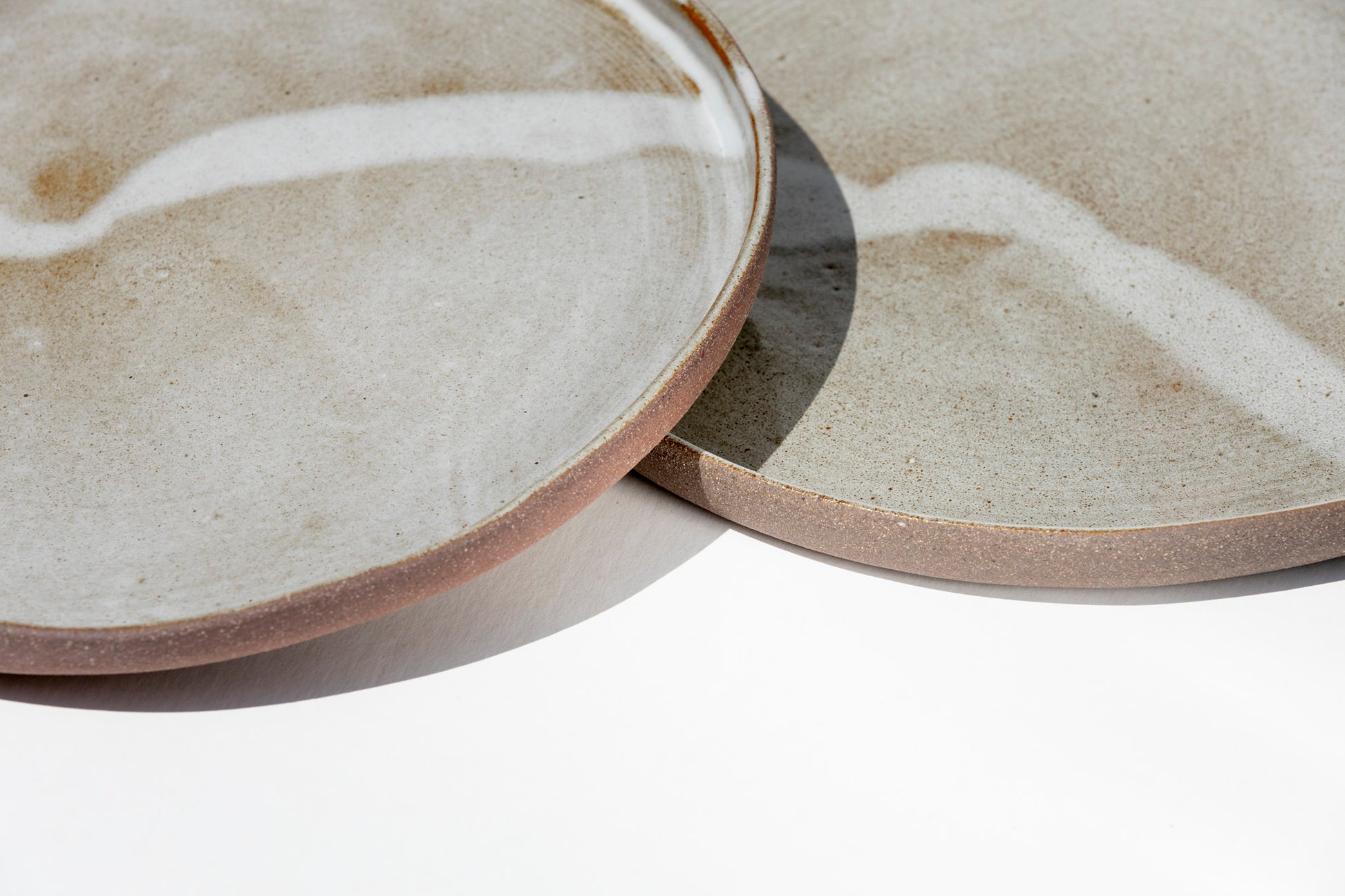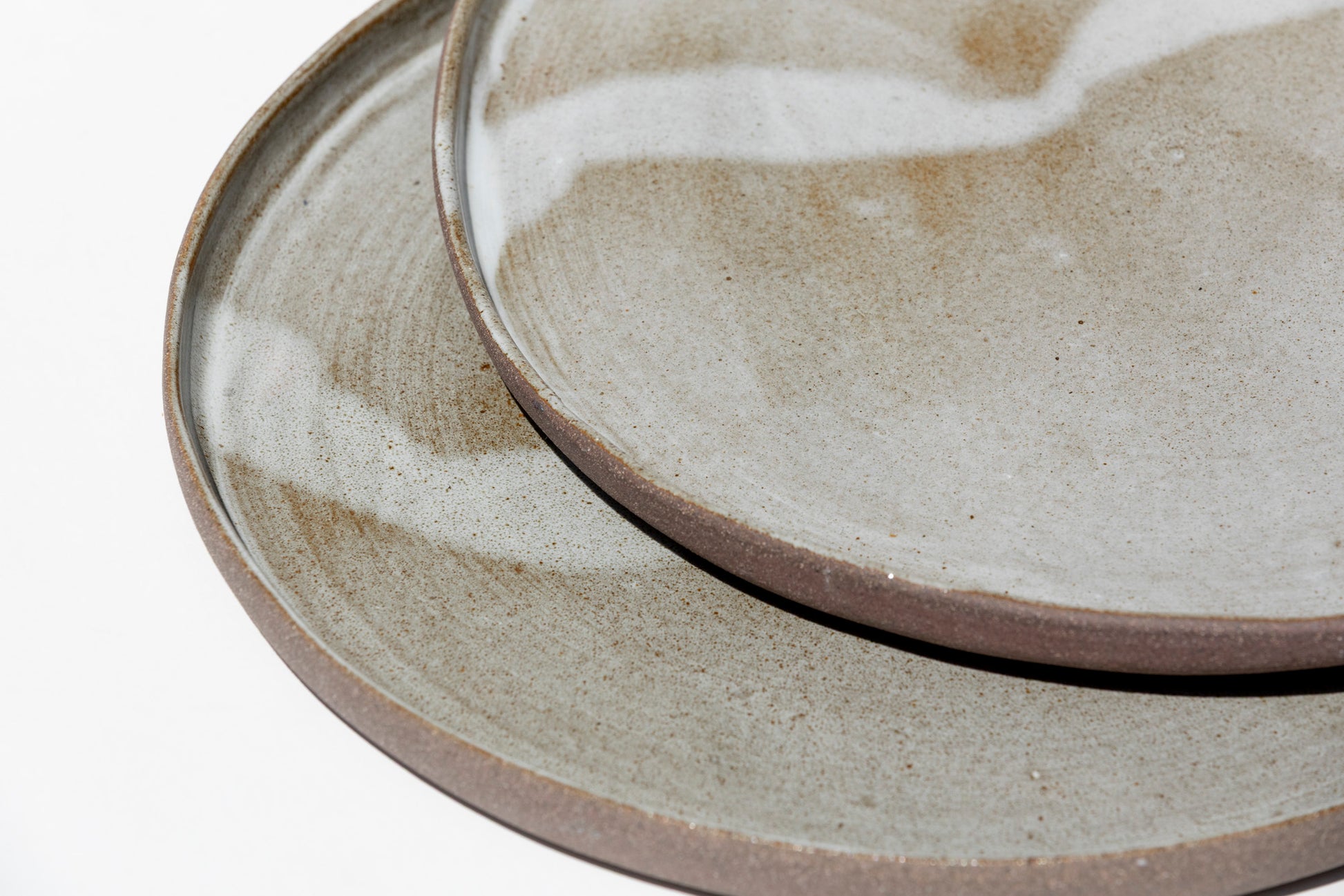 Elevate your dining experience with this beautiful pair of dinner plates. Each plate is hand-thrown with locally sourced brown stoneware clay and features a speckled earthy glaze. The combination of subtle variations in the glaze and the hand-thrown construction ensures each plate has its own distinctive character, making every meal feel special. Whether you're serving a casual family dinner or hosting a dinner party, these versatile plates provide the perfect canvas for your culinary creations, while the earthy, neutral tones compliment any table setting or cuisine style.