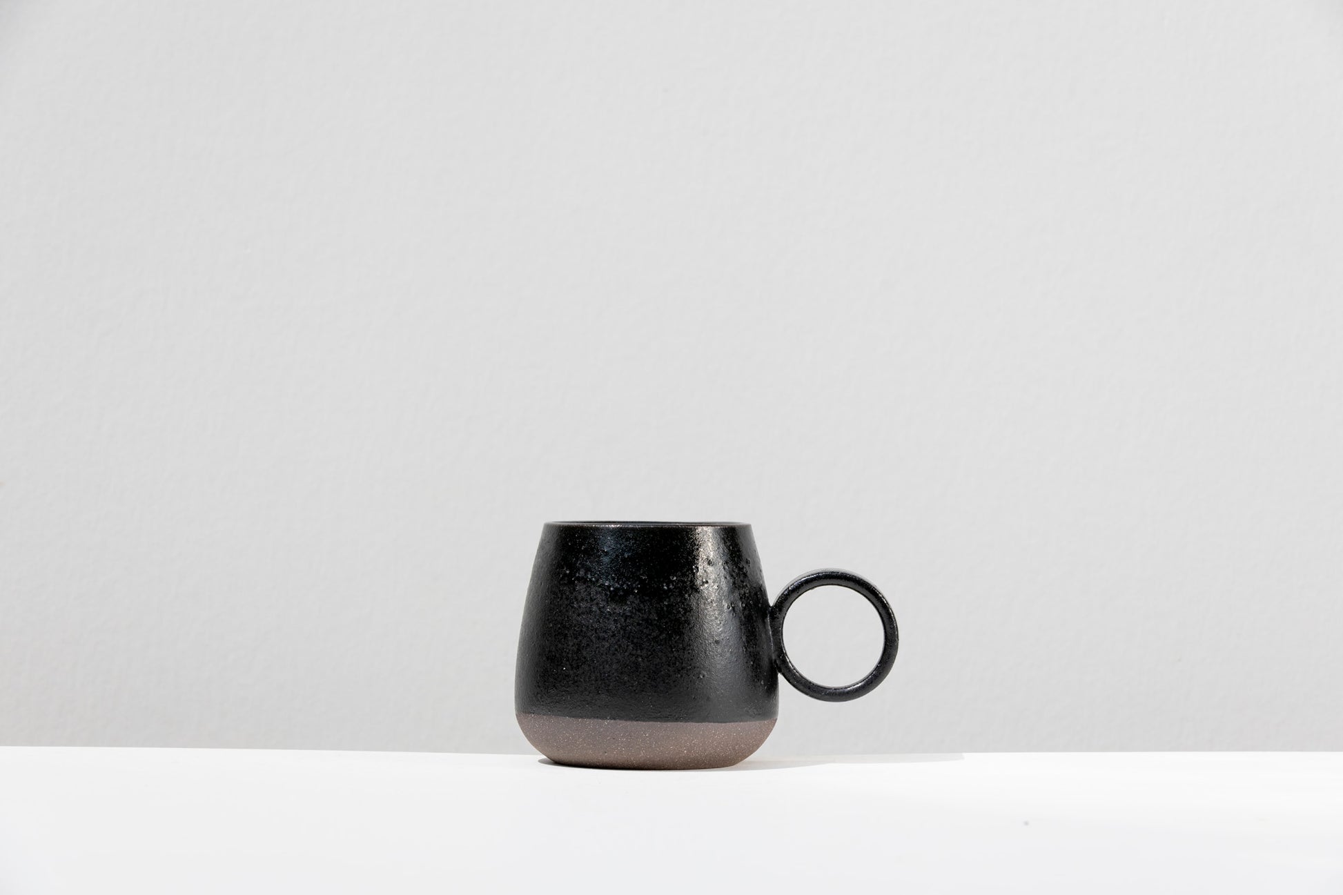 Share your favorite beverages with this unique set of two handcrafted stoneware mugs, showcasing a uniquely textured matte black exterior and shiny white on black marbled glaze interior. With 250ml capacity, these mugs are ideal for that extra large cup of coffee or hot chocolate, perfect for cozy evenings or as a gift.
